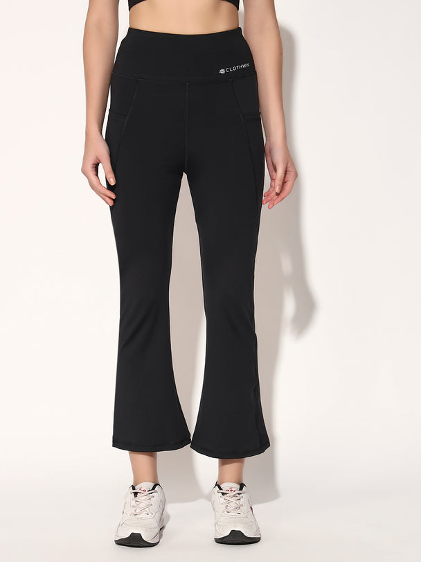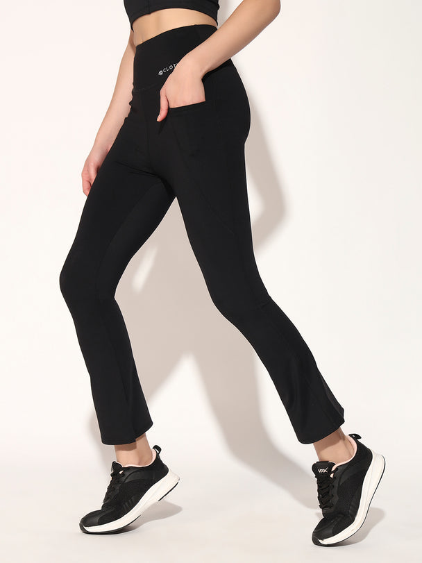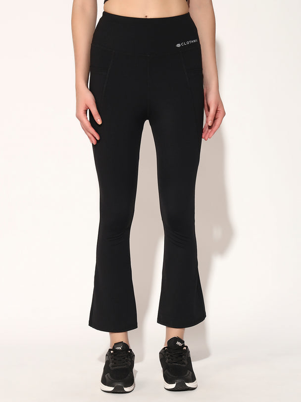 NYLON WOMEN WORKOUT FLARE PANT - BLACK