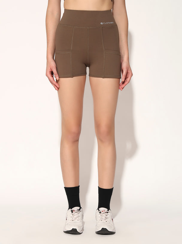 NYLON WOMEN WORKOUT SHORTS - BROWN