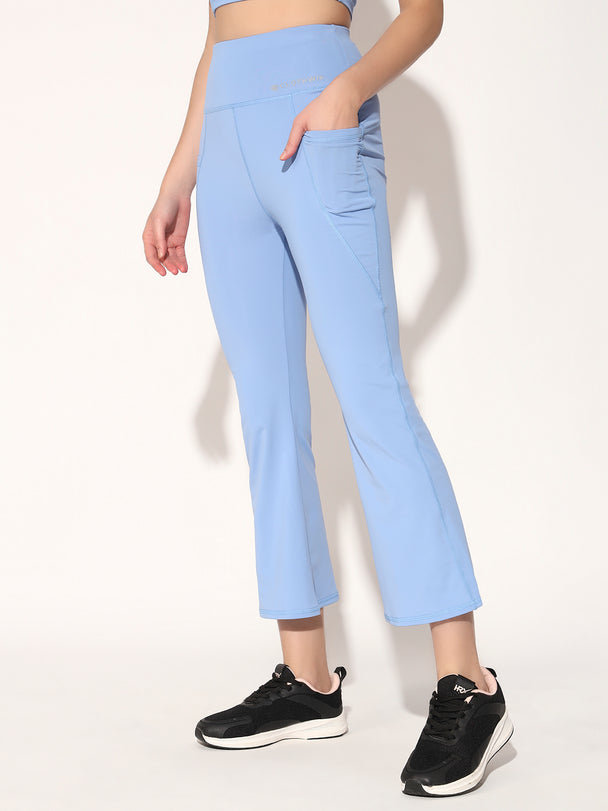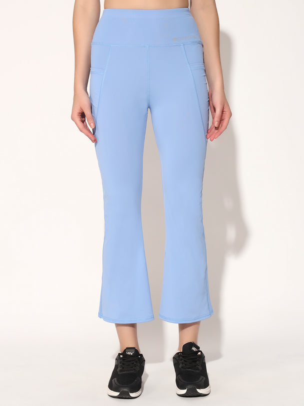 NYLON WOMEN WORKOUT FLARE PANT - SKY BLUE