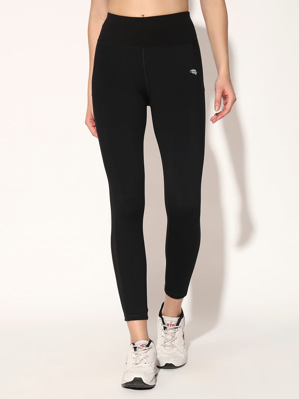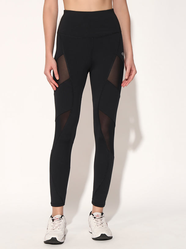 Nylon Women High Waist Mesh panel Training Tight - Black