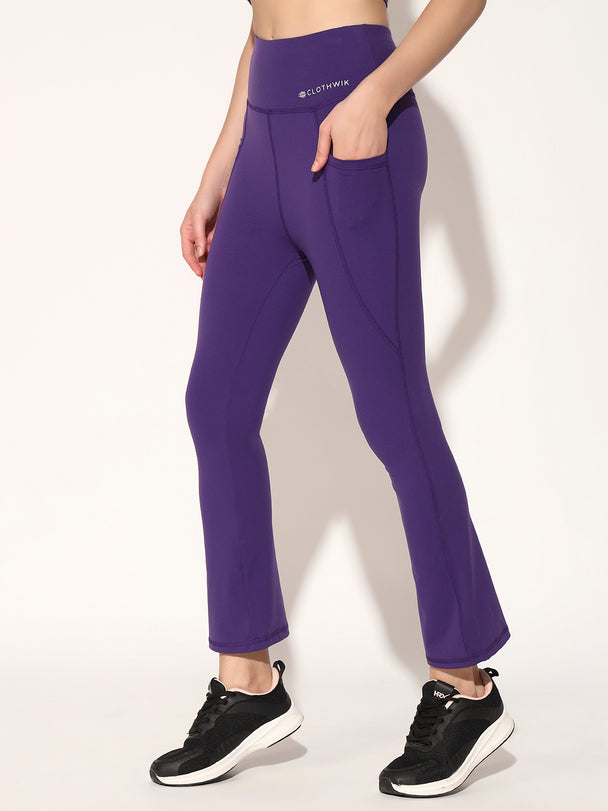 NYLON WOMEN WORKOUT FLARE PANT -TRUE PURPLE