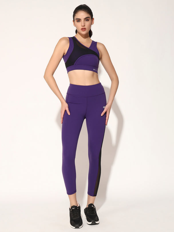 WOMEN WORKOUT HIGH WAIST PAIR WITH MESH PANNEL - TRUE PURPLE