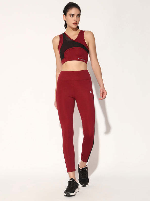 WOMEN WORKOUT HIGH WAIST PAIR WITH MESH PANNEL - MAROON