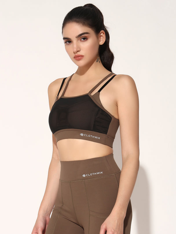 NYLON WOMEN WORKOUT SHORTS BRA - BROWN