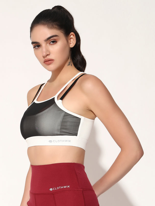 Nylon Women High Impact breathable Mesh Sport Bra - Black