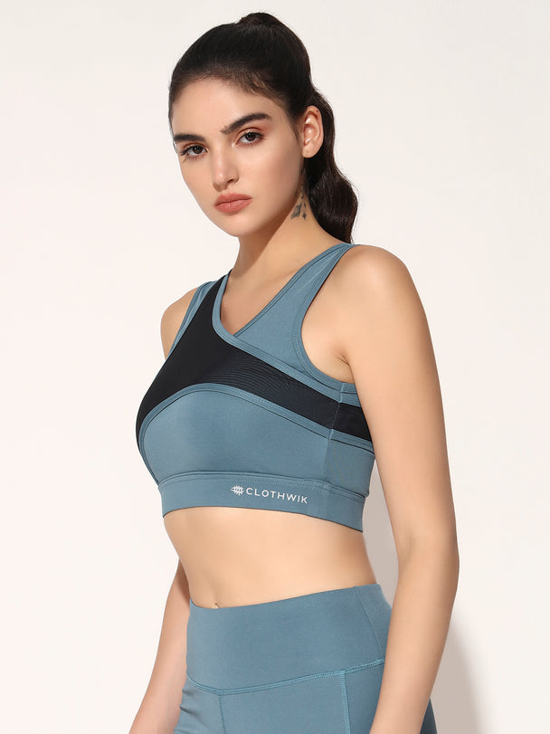 NYLON WOMEN FORNTCROSS MESH SPORTS BRA - ICE BLUE
