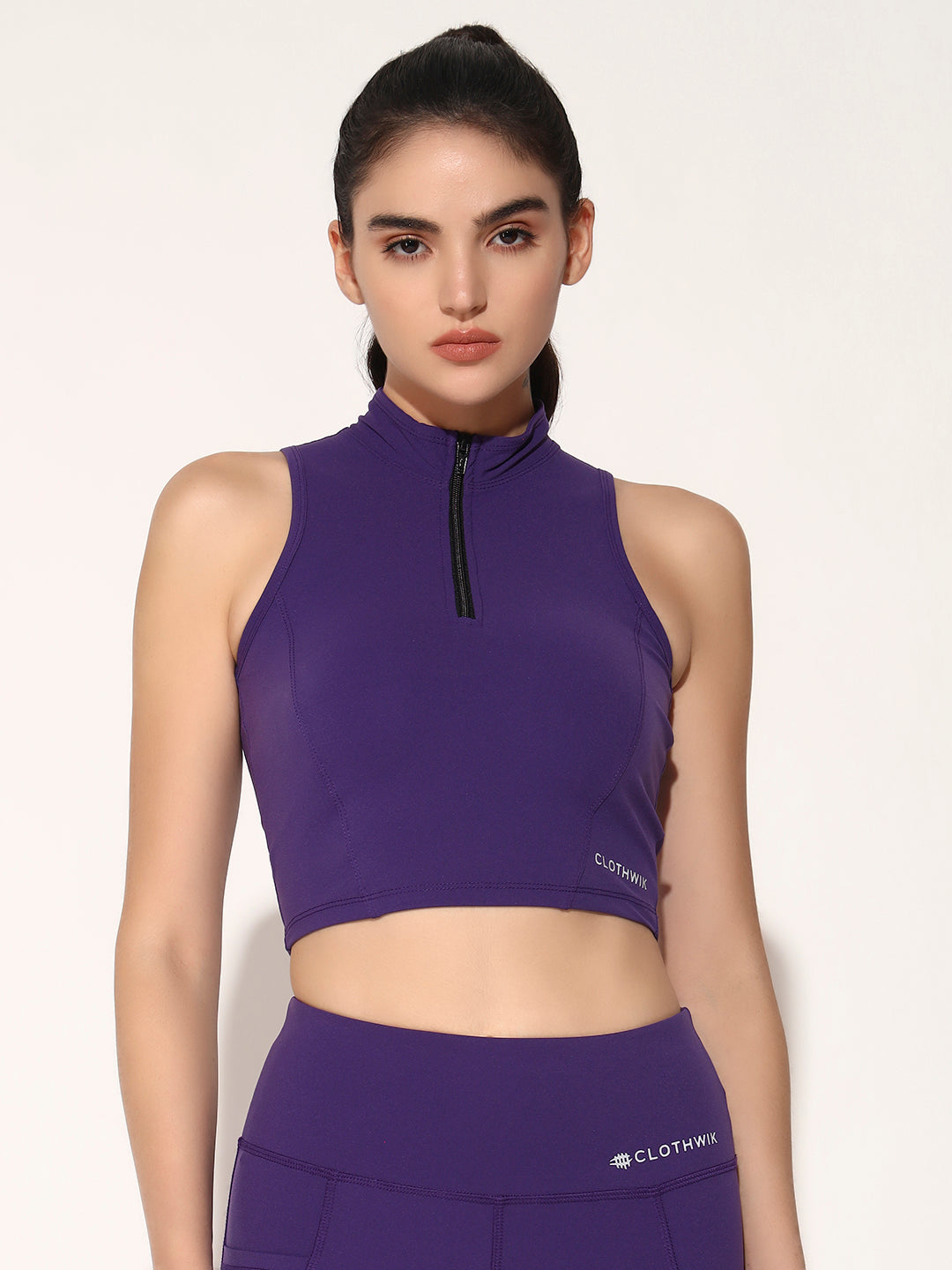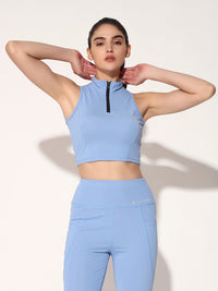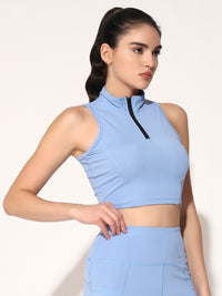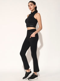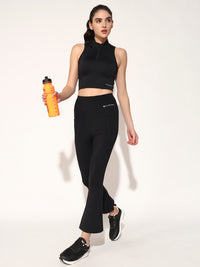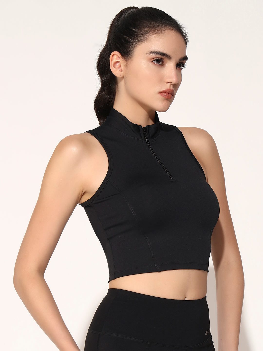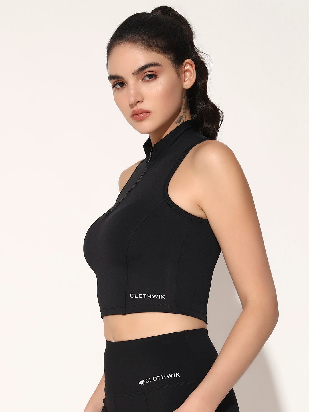 NYLON WOMEN FRONT ZIP SPORTS TOP - BLACK