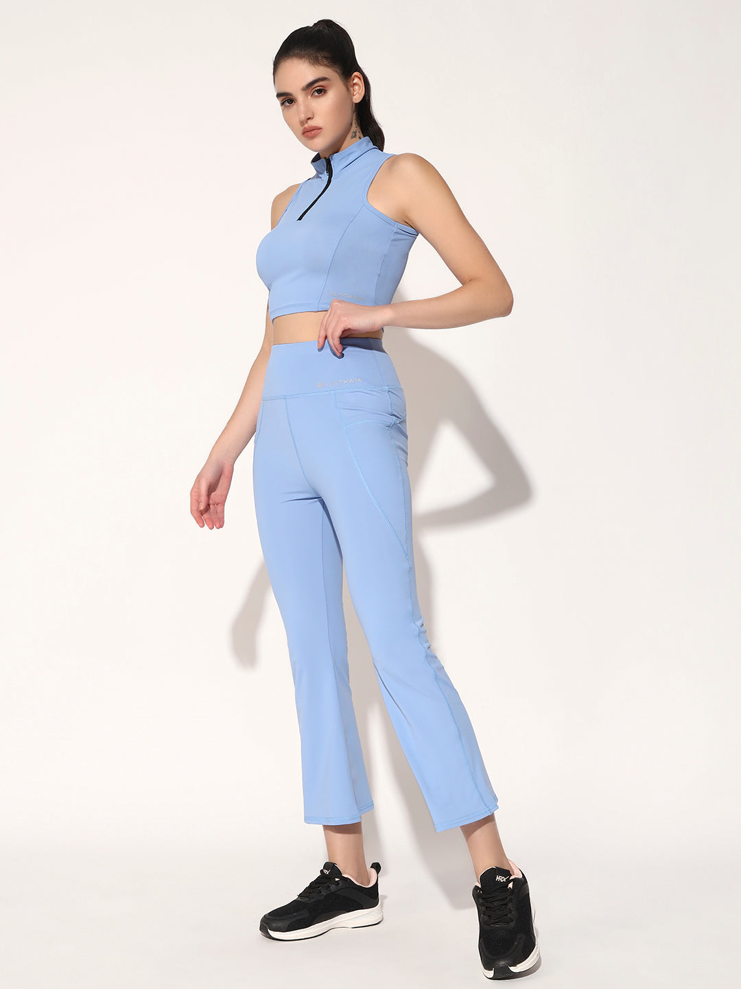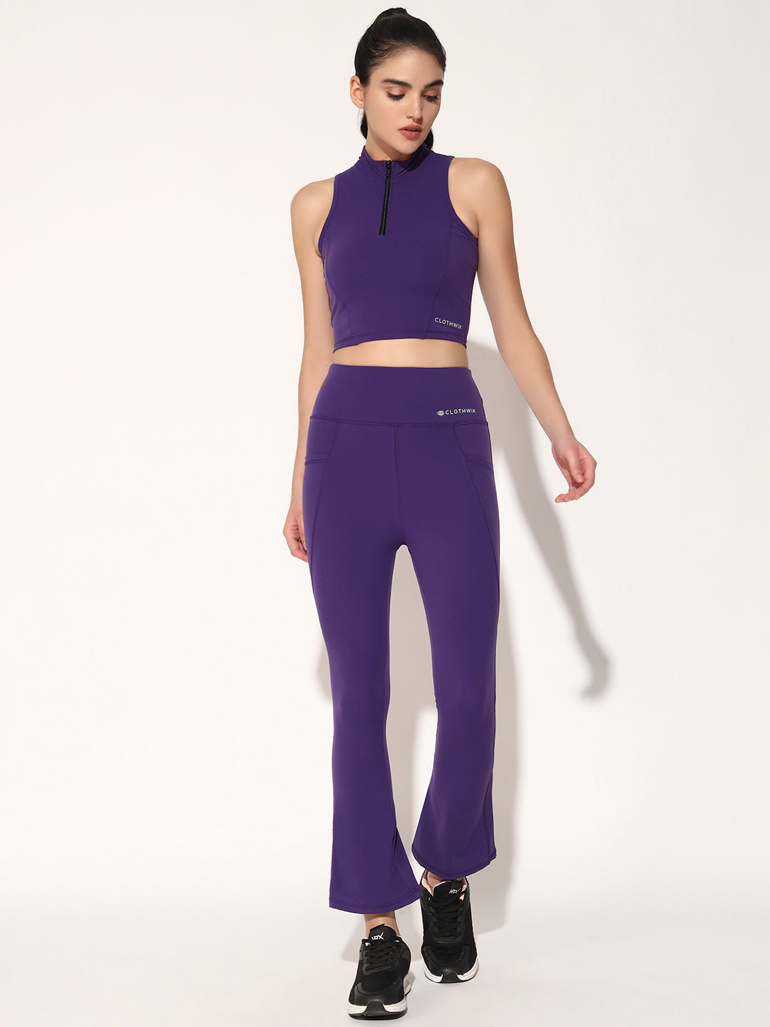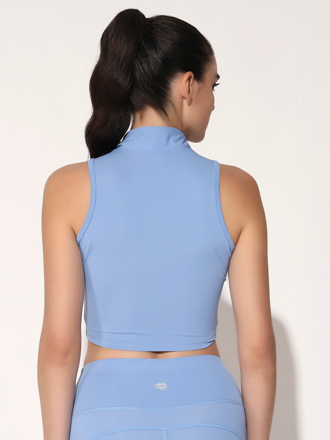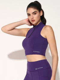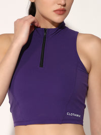NYLON WOMEN FRONT ZIP SPORTS TOP - BLACK