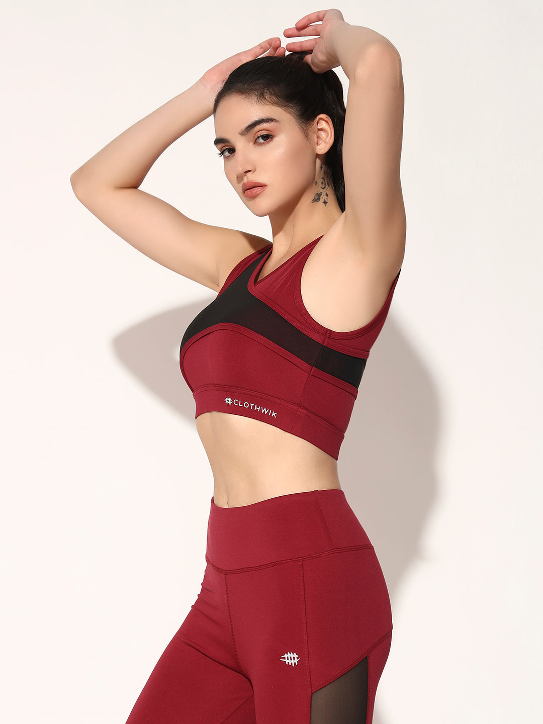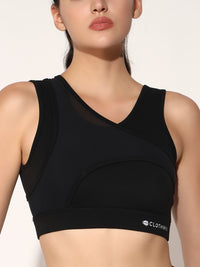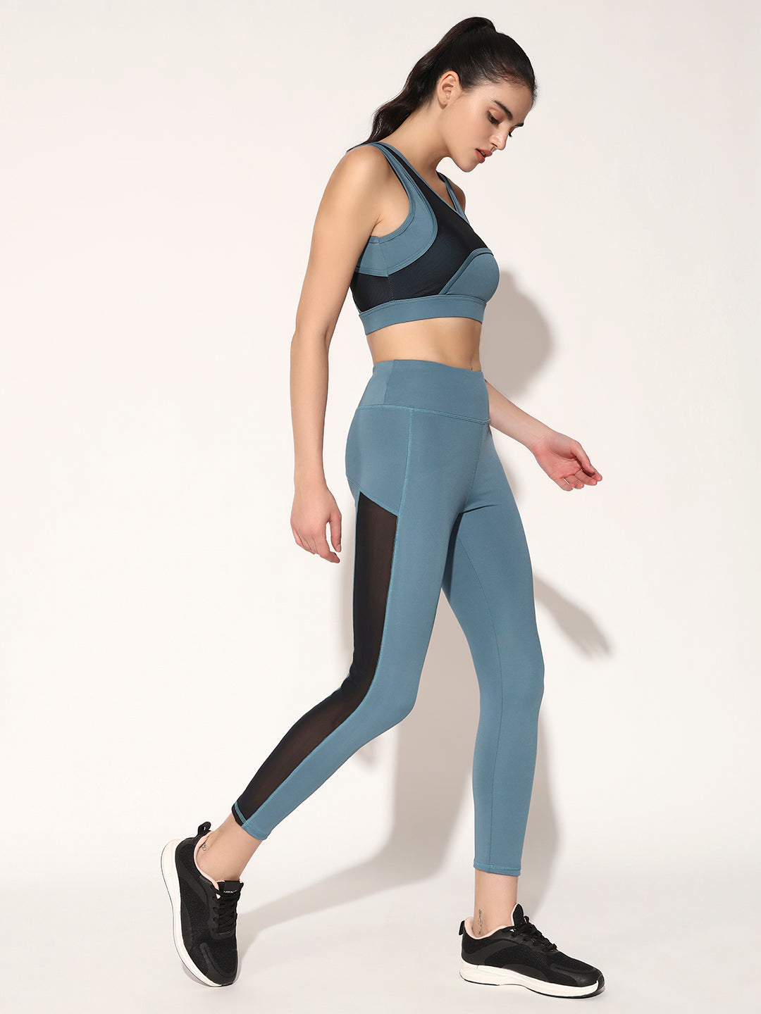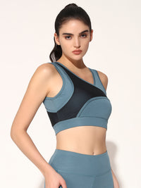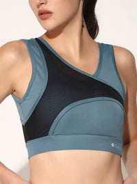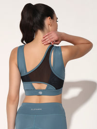 NYLON WOMEN FORNTCROSS MESH SPORTS BRA - ICE BLUE